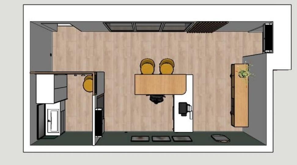 Bureau de 26m2 comprenant une petite pièce de 4m2 avec lave main, rangements, micro ondes et bouilloire.